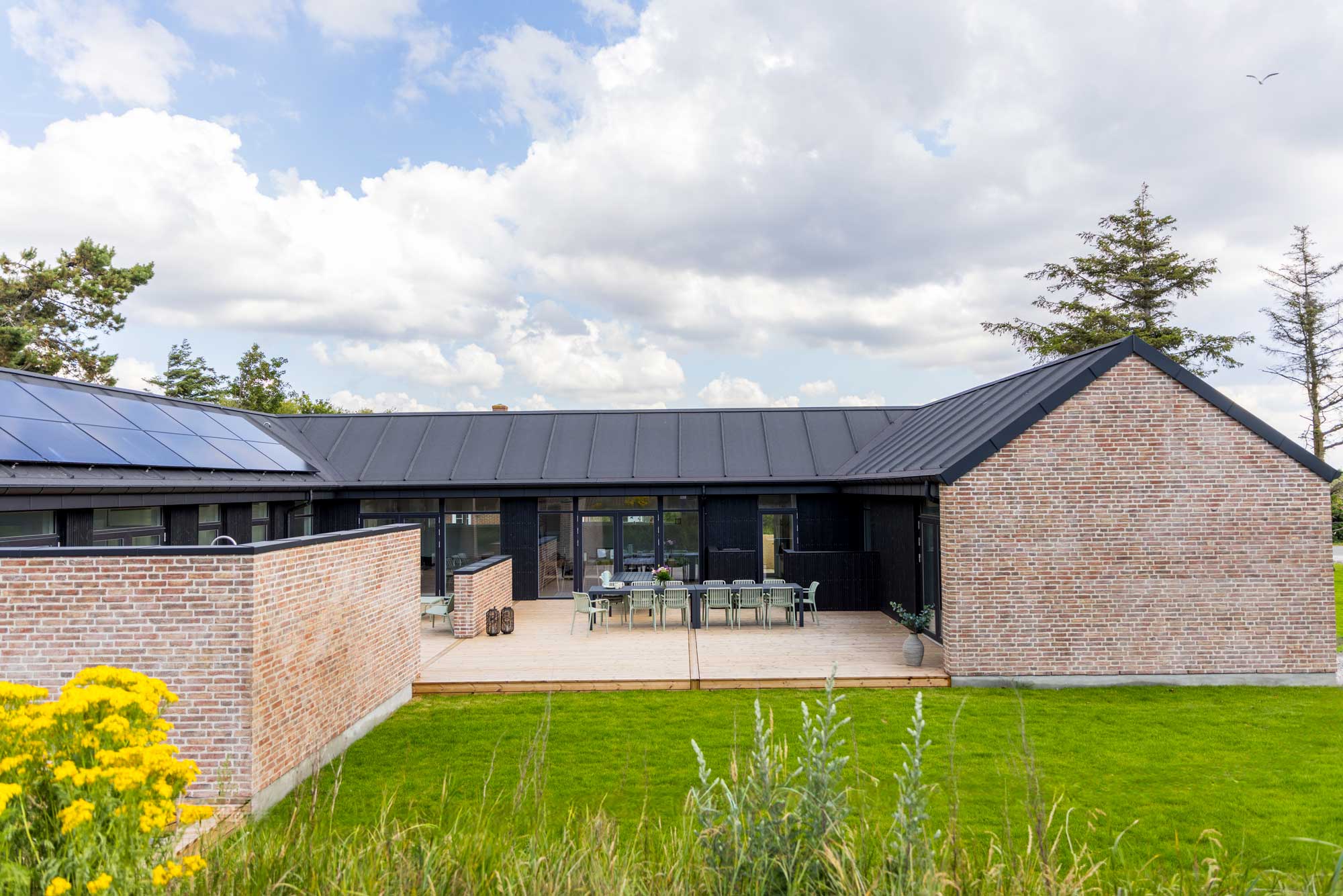 Dette smukke sommerhus er opført med et Dan Rende system lavet i 87% genanvendt aluminium. Det er smukt, funktionalitet og har lang holdbarhed.